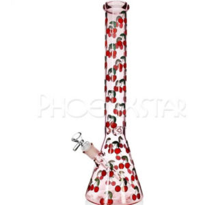 18 INCH PINK GLASS WITH CHERRIES BEAKER WATER PIPE