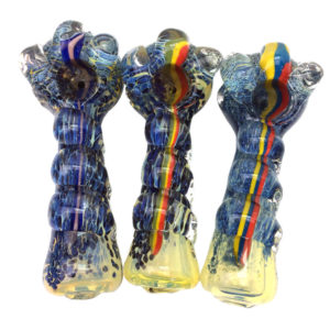 5 INCH RASTA STRIPED FUMED FRIT HEAD THICK HAND PIPES