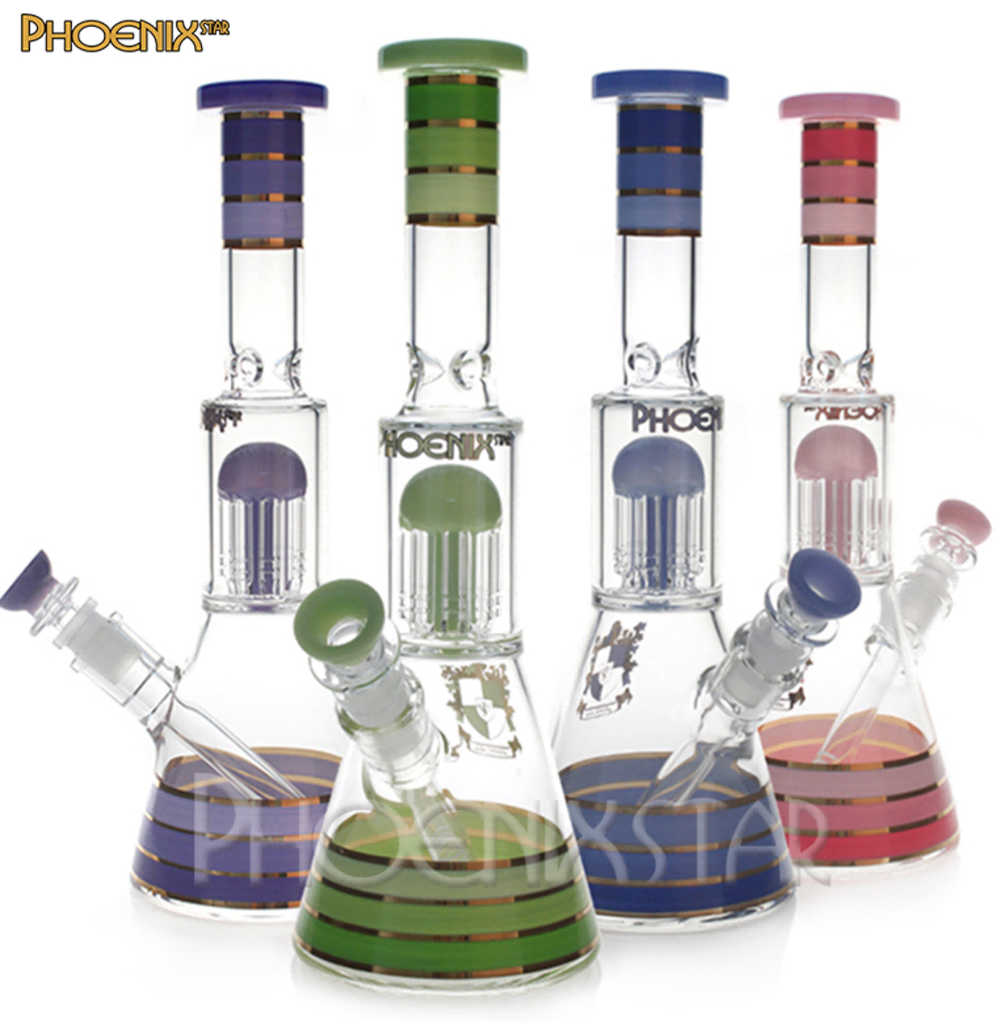 12 INCH 8 ARM TREE PERC WITH COLOR BANDS BEAKER WATER PIPE