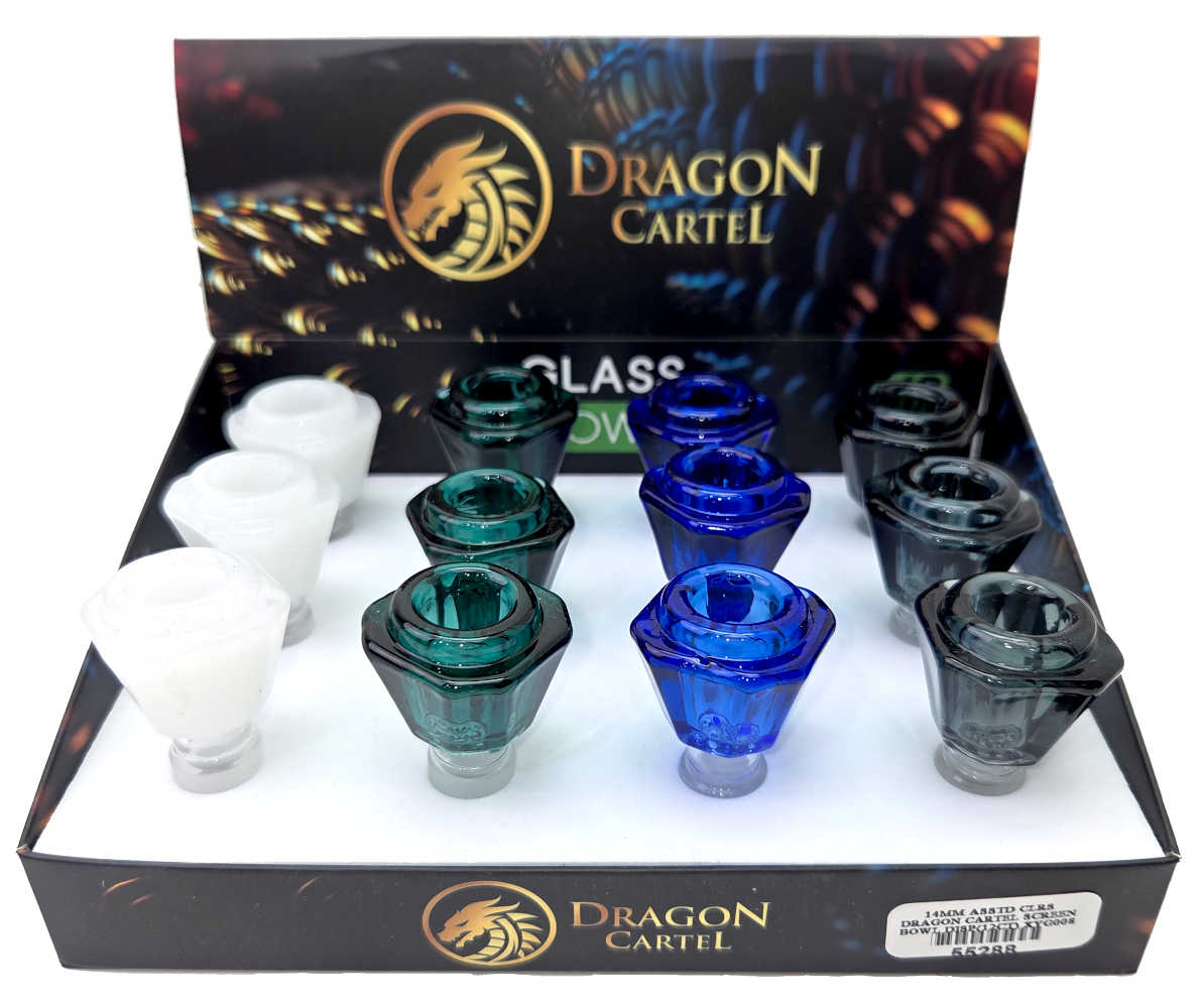 - 14MM ASSORTED COLORS DRAGON CARTEL SCREEN BOWL DISPLAY (12CT) XYG008