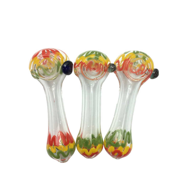 | Description | 4.5 INCH CLEAR WITH THREE LINE RASTA SOLID FRIT PEANUT PIPE |