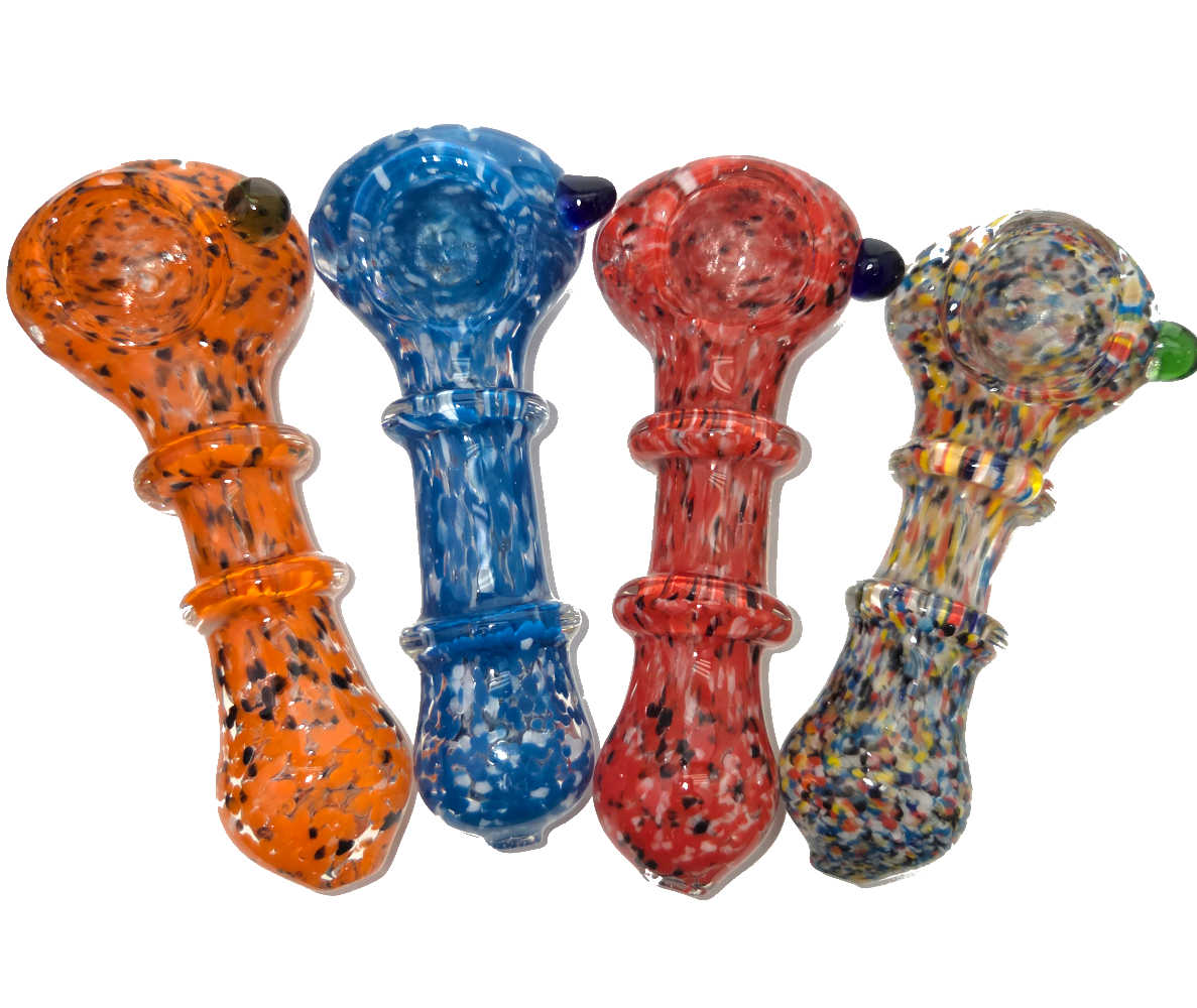 4 INCH ASSORTED COLORS FRIT SPATTER DUAL RING HAND PIPE JAR (30 CT)
