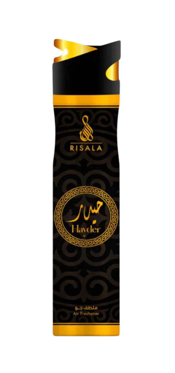 Command your space with the bold and refined scent of Risala Hayder. Crafted to make a statement, this 300ml air freshener blends deep woody and spicy notes that evoke confidence, warmth, and strength.