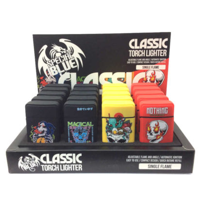 The Special Blue 2.5” Classic Torch Lighter are a collection of premium lighters designed with a rubberized grip for enhanced durability and comfort. This portable lighter fits easily in your pocket or bag for quick access whenever you need due to on-the-go convenience size of 2.5” high. This Classic Torch Lighter is perfect for lighting cigarettes, cigars, candles and more. Also, the classic design will adds a simple yet unique style to your smoking accessories