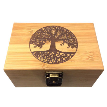 SWAG GEAR BAMBOO BOX/JAR/GRIND MED ENGRAVED TREE OF LIFE