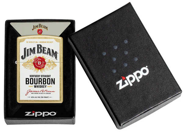 The iconic Jim Beam® label appears on this classic Street Brass lighter in a bold and timeless Color Image design. Comes packaged in a gift box. For optimal performance fill with Zippo lighter fuel.
