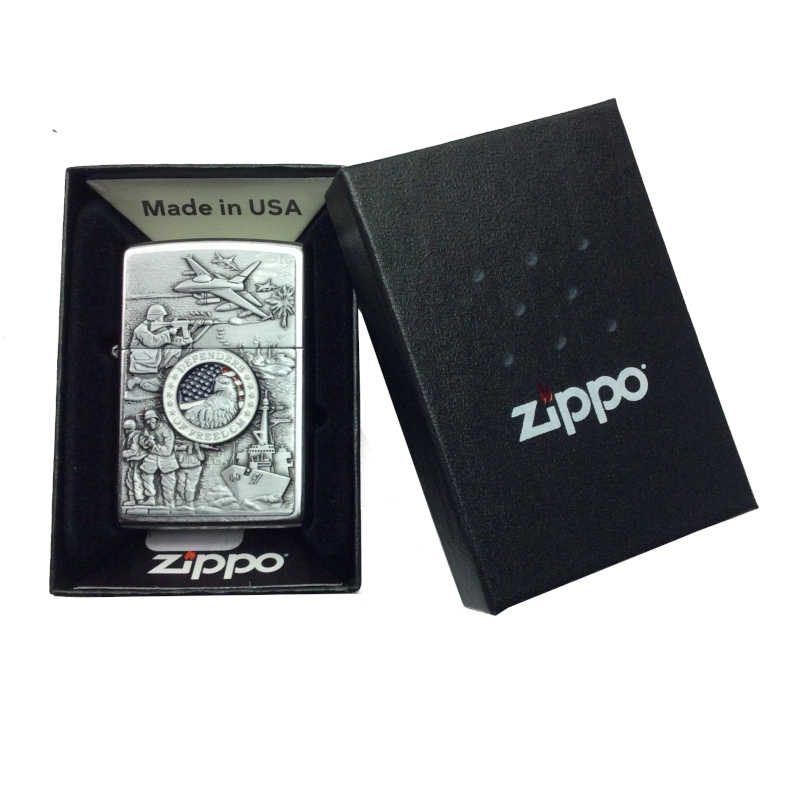 Zippo 24330 Classic lighter features Street Chrome finish with joined forces emblem matel body. Zippo 24330 lighter has reliable flint wheel ignition. All Zippo lighters are Made in the USA. Like all genuine Zippo windproof lighters, Zippo 24457 Classic joined forces emblem Street Chrome windproof lighter comes in a original Zippo environmentally friendly cardboard gift box with Zippos lifetime guarantee. Note that fuel for all Zippo lighters are sold separately.